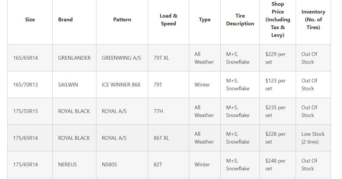 By importing directly from the manufacturer, we consistently offer the cheapest tire prices in Calgary.
